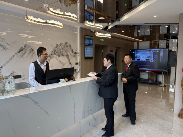同时干警深入辖区内的多家宾馆、民宿,开展针对性普法。向前台工作人员和入住旅客普及住宿安全、隐私保护、反诈骗等法律知识,并特别提醒前台工作人员,要严格落实实名登记制度,发现可疑情况及时报告,共同筑牢安全防线。